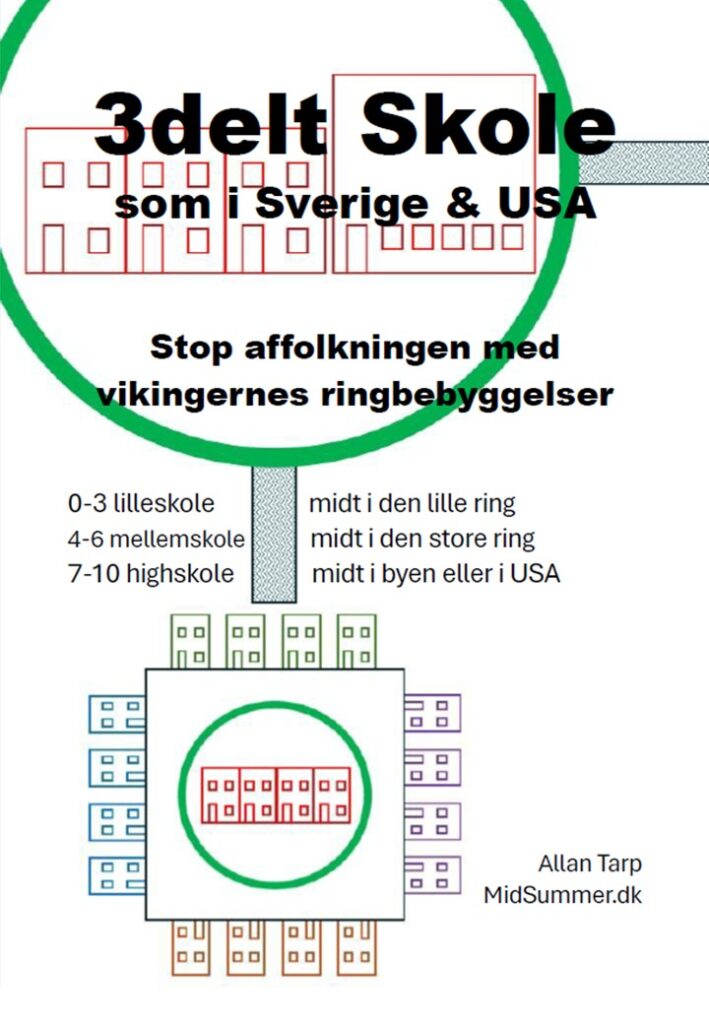 Kort sagt. Vikingernes ringbebyggelse til børnefamilierne vil sammen med et tredelt skolesystem stoppe affolkningen, fordoble produktiviteten, og dermed produktionen.